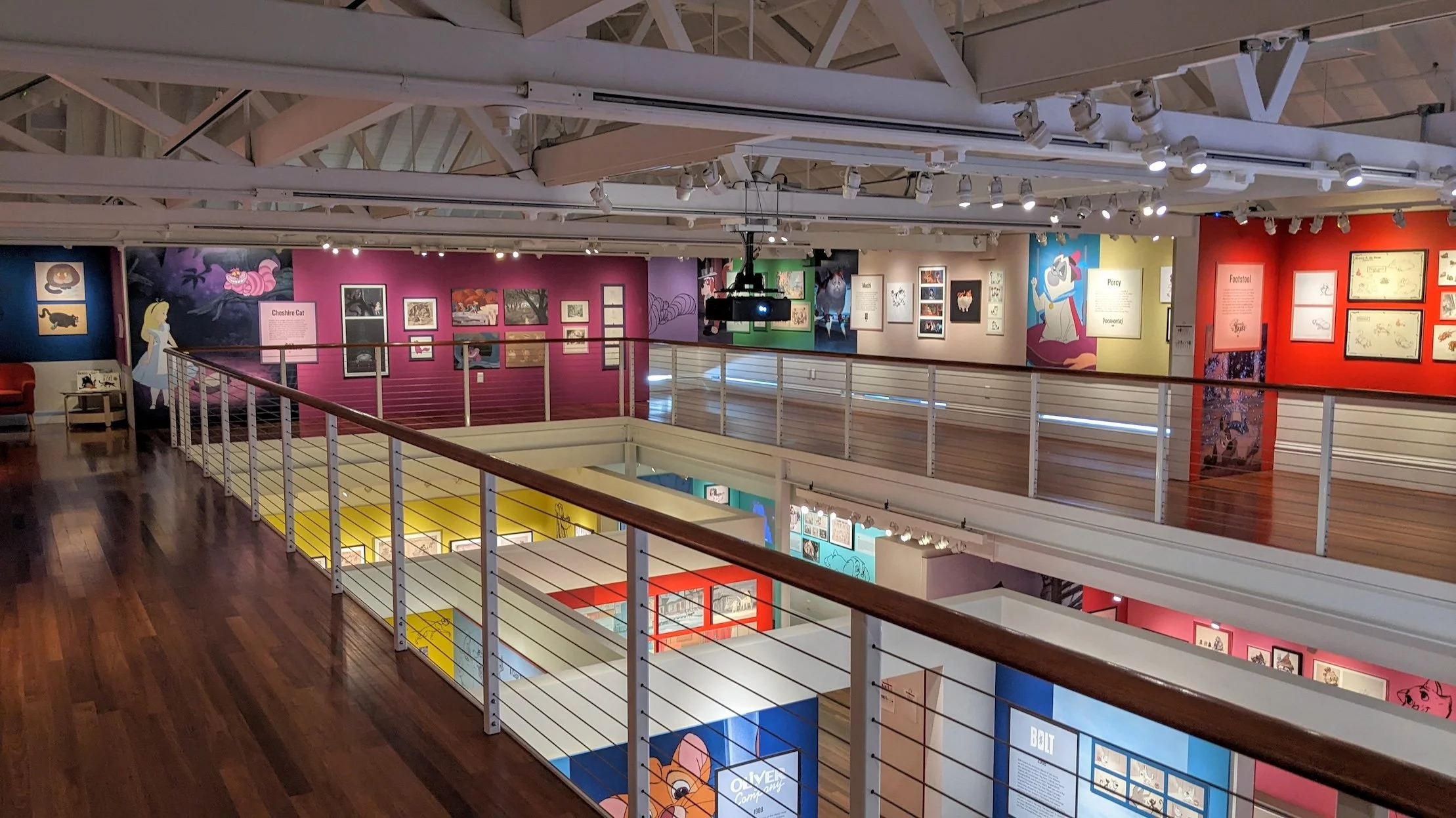 Upper gallery of the Disney Cats & Dogs exhibition.