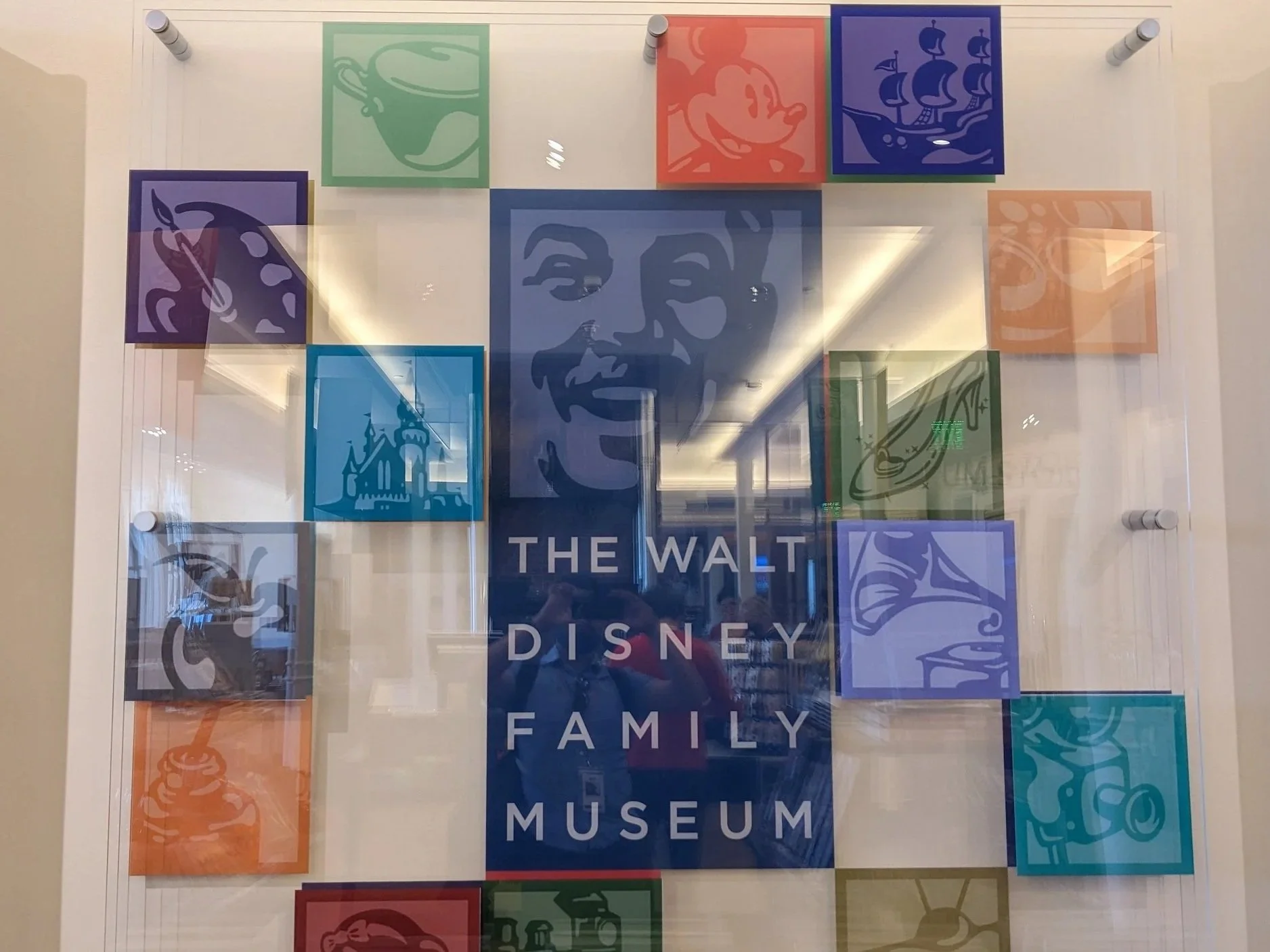 Colorful display at the entrance of The Walt Disney Family Museum.