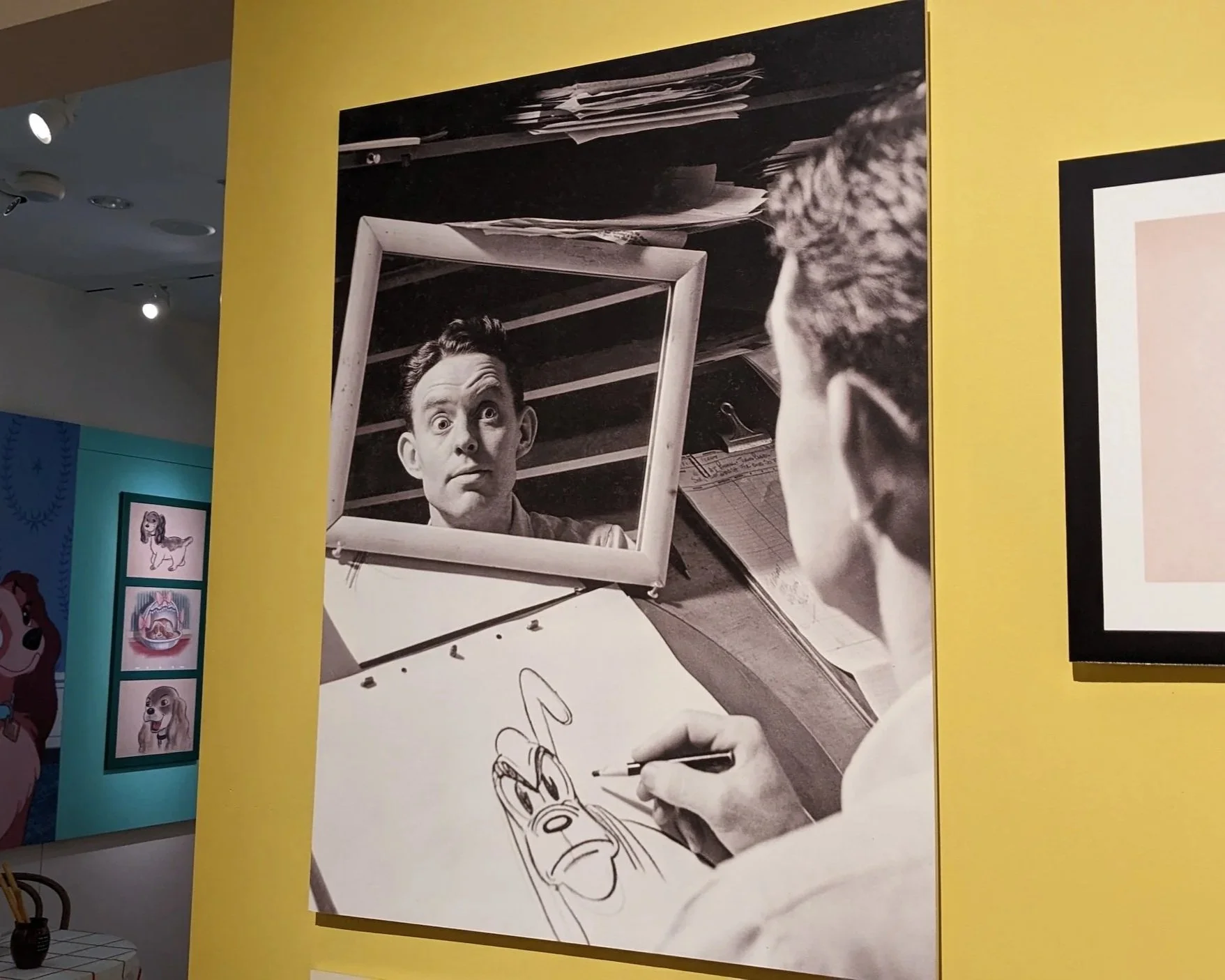 The exhibition shows how animators studied real animals to capture movement, expression, and personality. They also studied themselves, using mirrors to sketch their own exaggerated faces and bring humor and emotion to the characters.